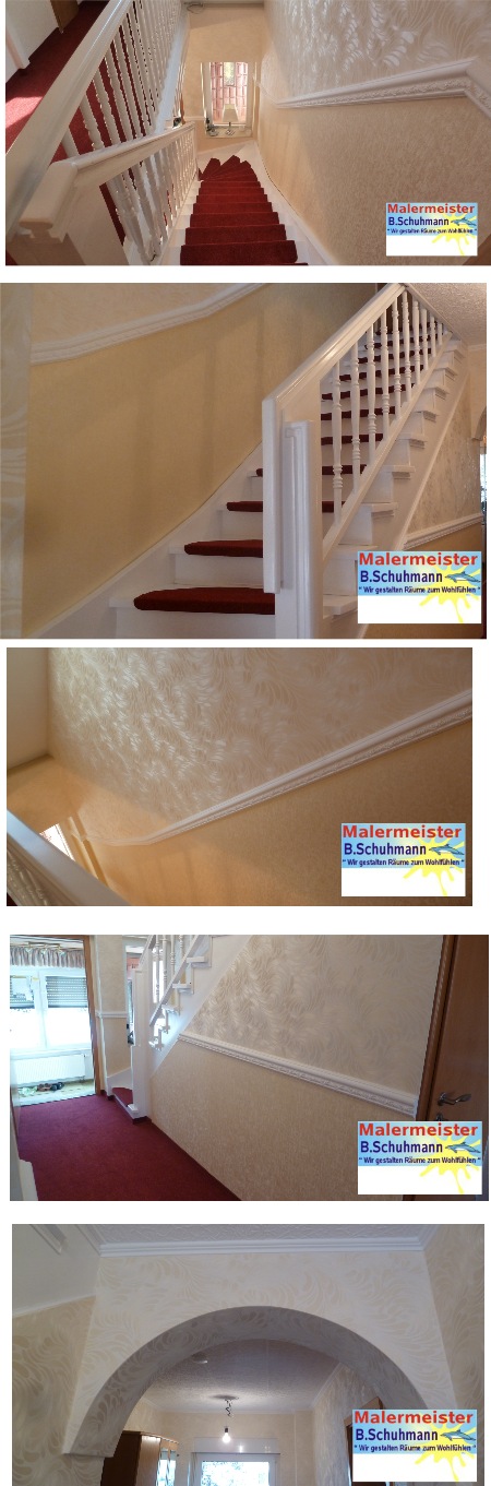 Trepenhausgestaltung mit hochwertigen Design Tapeten u. Profilleisten