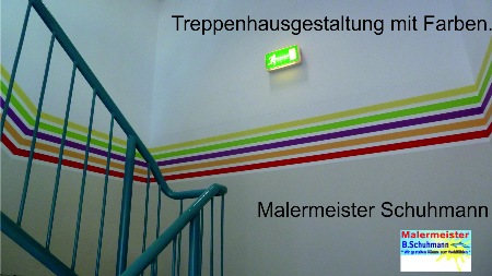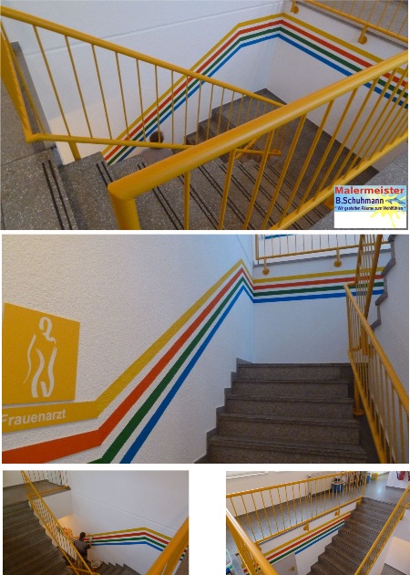 Treppengestaltung mit Farbstreifen als Wegweiser.