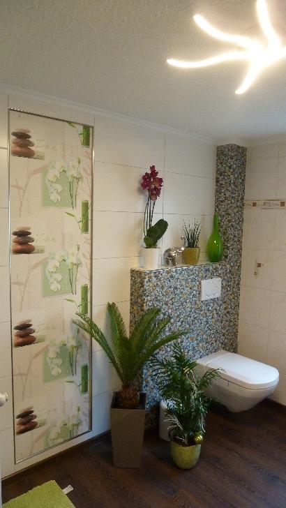 Badgestaltung mit Design-Glasfasertapete und Farbharmonie.