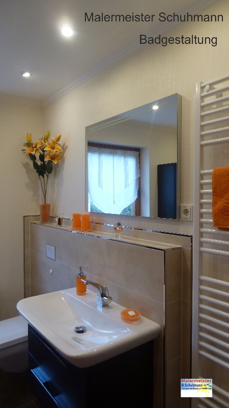 Badgestaltung mit Bodentiefer Dusche u. Teilfliesen im Duschbereich